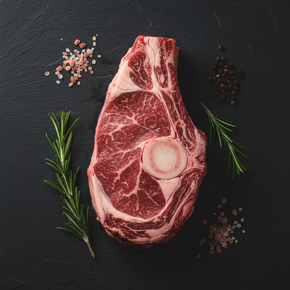 Côte de bœuf de la race blonde d’Aquitaine.